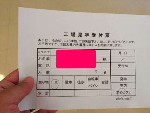 工場に入って守衛さんから渡された工場見学受付票に記入して「もの知りしょうゆ館」に入館。工場内には大豆が茹でられるとてもいい香りが漂っていて、実に落ち着くのです。