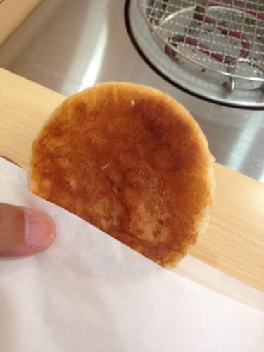 完成! 醤油せんべい。当たり前ですが、焼きたてアツアツなのがいいですね。美味しかったなあ。