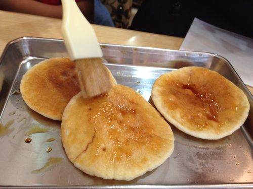 あと、「せんべい焼き体験」を注文。せっかく工場に来たし、ソフトクリームを食べて帰るだけではつまらないのでおせんべいを焼いてみることにしました。3枚で210円です。3人なのでちょうどよかったです。