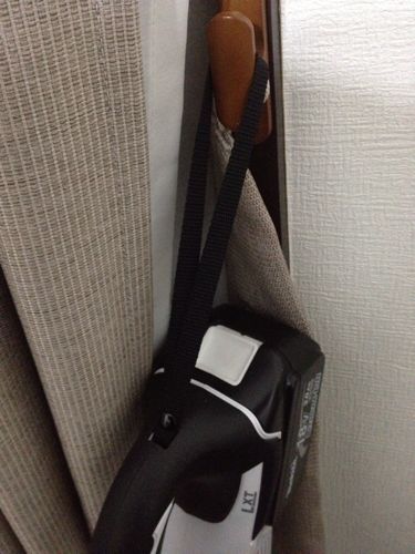 ちょっとしたゴミをみつけたらこんな感じでカーテンフックに引っ掛けてあるマキタをサッと握って、ガーッと吸って、また戻す。10秒もあれば一連の動作が完了します!