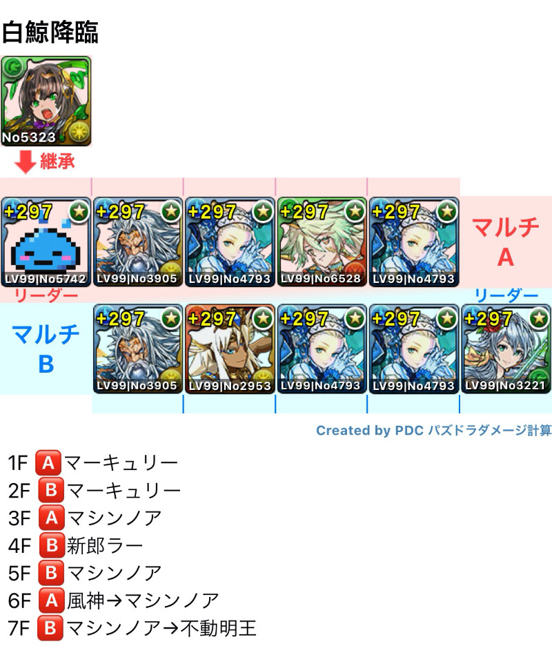 その他、無課金キャラにこだわらなければウェルドール+風神鍵を極醒風神にしたり、テューポーンのところをスキブがそこそこある全体固定ダメージ(新郎ラーとか)にすればアシストは不動明王のとこくらいで済むはず。